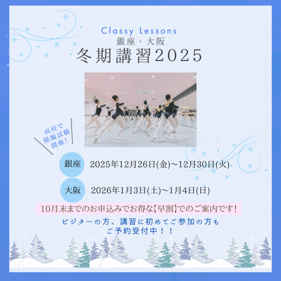 Classy Lessonsの受験ノウハウと有名講師によるレッスンが大阪で受講できるようになりました。基礎と見せ方のバランスを取ったバレエレッスン、受験対策をしっかり行うジャズレッスン、正しい発声と音楽性を身につける声楽、個性に合わせてプラニングする面接のレッスンを用意しています。
